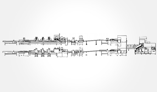 包裝段采用兩臺SE-5000A型枕包機,配合兩臺高速集積器及合流裝置,實現(xiàn)一臺SE-5700A-BX枕包機完成整線的集合包包裝,分道裝置完成生產(chǎn)線單包/集合包的自由切換;裝箱段采用WDC-240型封箱主機,一側(cè)配單包集積器、一側(cè)配集合包集積器,實現(xiàn)在一臺機器上完成兩種形式的自動裝箱。